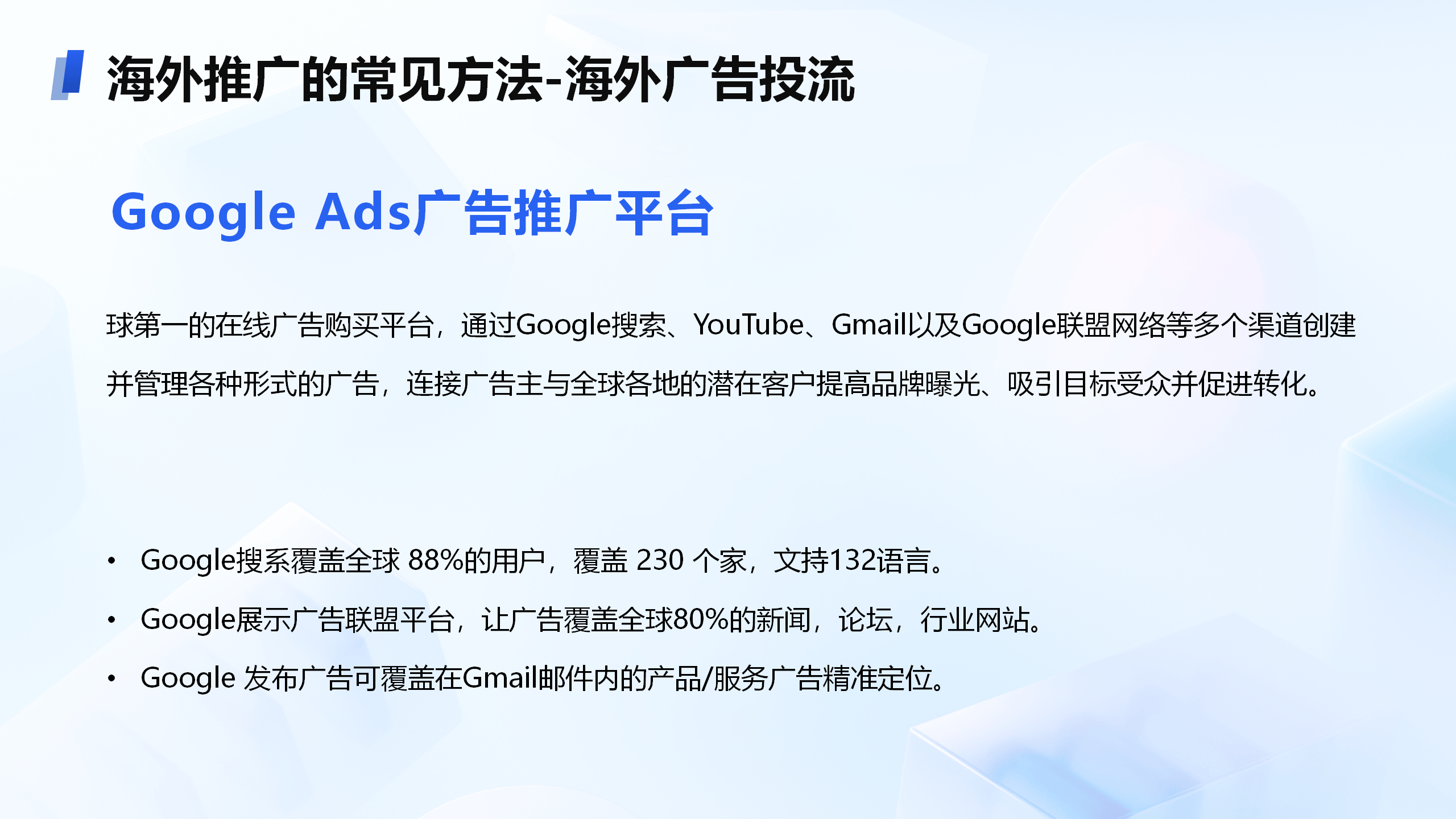 :提供全球云网 + AI智能体基建 - 运营服务 - 资源赋能三位一体解决方案,涵盖B2B外贸获客、B2C跨境电商、DTC品牌出海、外贸营销推广、工厂出海营销、海外社媒营销推广、独立站等多个领域。