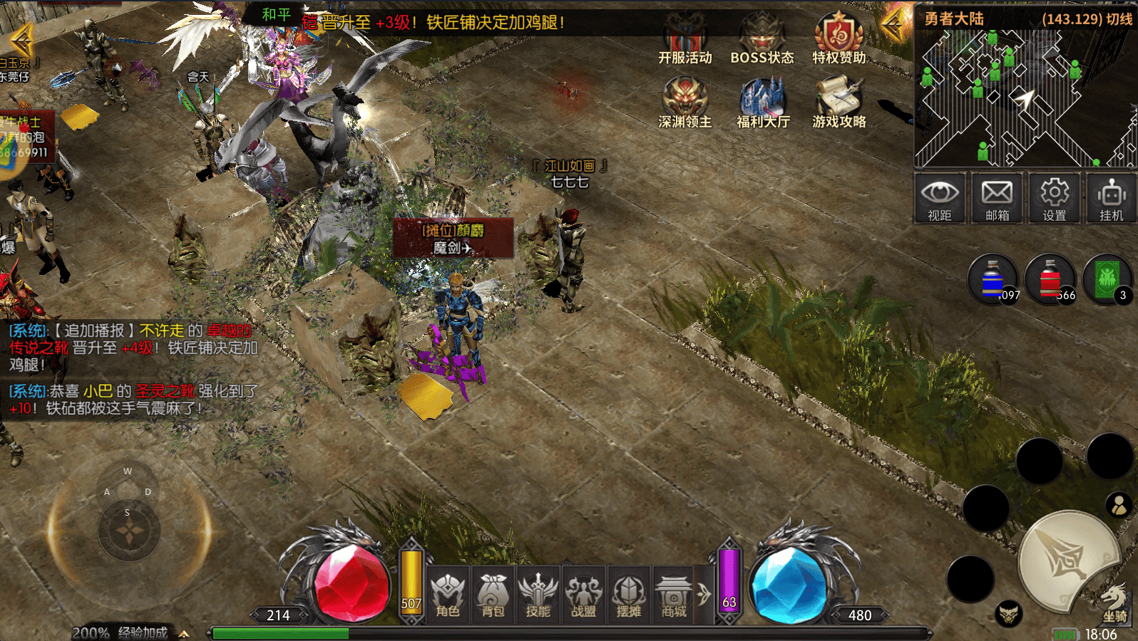 现在很多手游动辄VIP特权、氪金礼包,数值碾压让游戏失去乐趣,这也是怀旧玩家最反感的点。《荣耀出征》直接打破这个套路,采用亲民的月卡制,商城只卖外观和便捷道具,完全没有破坏平衡的属性加成。核心资源全靠打,祝福宝石、灵魂宝石这些强化必备材料,还有高阶装备、宠物胚子,都能通过副本挑战、野外刷怪、世界BOSS争夺获取,甚至能靠自由交易系统摆摊售卖,实现“刷宝-交易-养成”的闭环,搬砖玩家也能靠努力攒够资源。更贴心的是装备强化有保底机制,1-10级强化成功率100%,11-15级失败不降级,再也不用怕当年“强化归零”的挫败感,纯粹靠操作和肝度说话的公平环境,才是我们想要的热血战场。