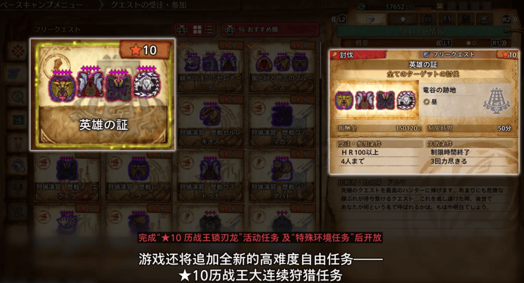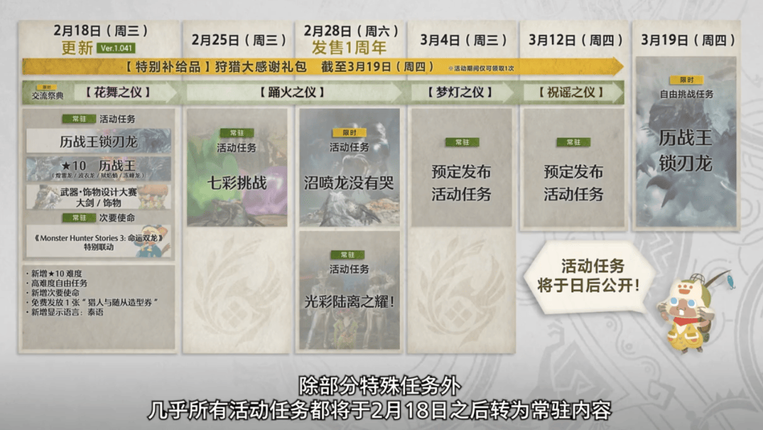 每周将发布新的活动任务,包含历战王锁刃龙,之前登场过的4只历战王任务等。