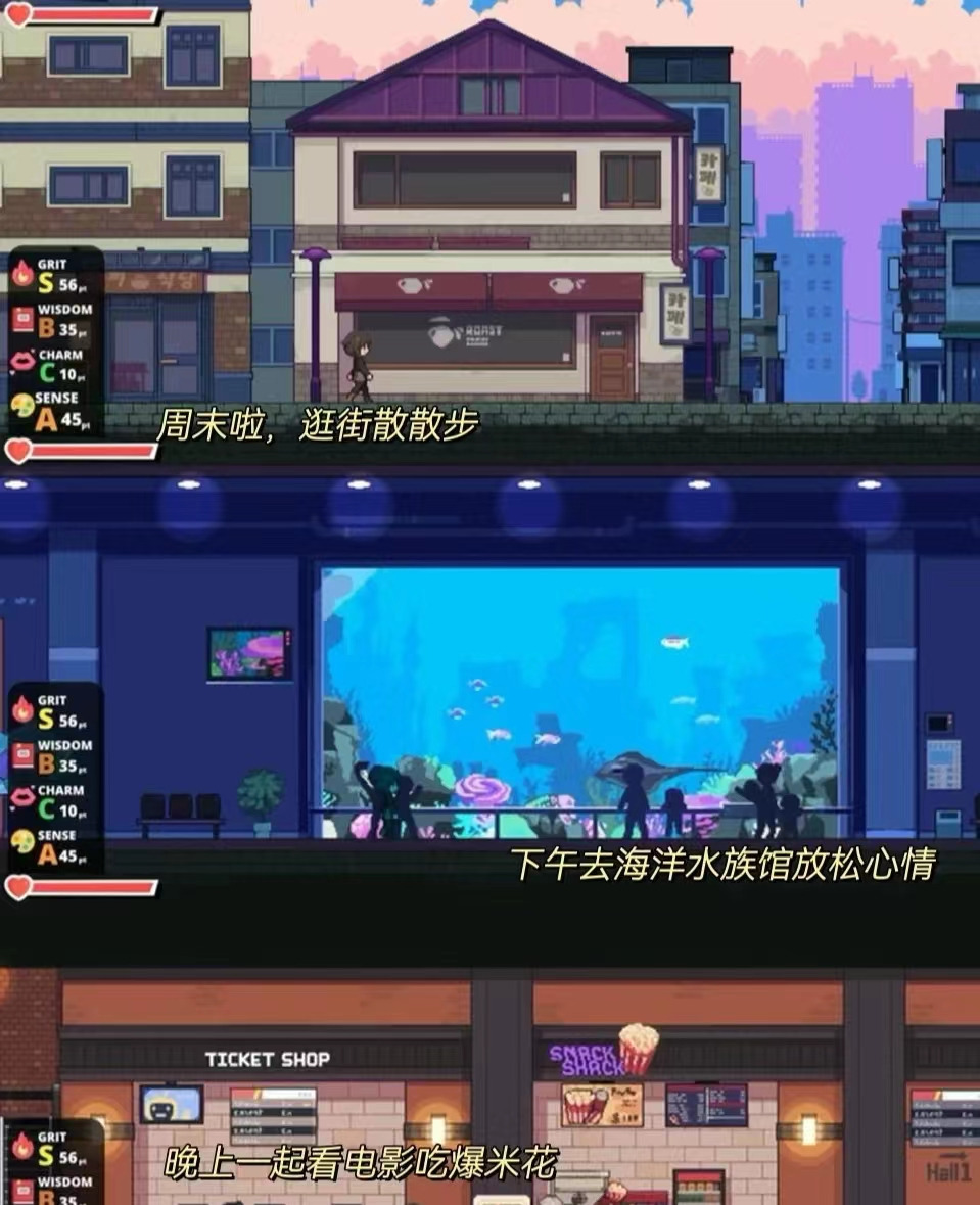 垂死病中惊坐起,小A幻视起平行世界的自己——周中赚钱搞事业,周末和不同类型男主角约会。而更令她惊喜的是,这款乙游还是以动态开放世界为背景,玩家可以在城市内四处探索互动,带来沉浸式的体验。