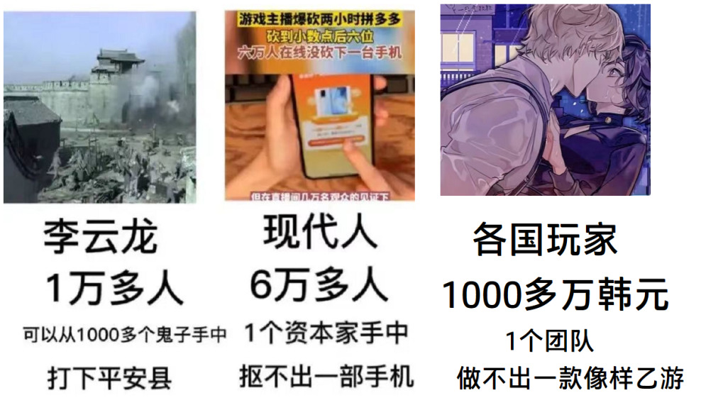 然,dollar常有,而刀不常有。就像超级小桀直播间6万人在线砍拼多多失败了一样,各国少女一千多万韩元的众筹也无法使这款乙游兑现。